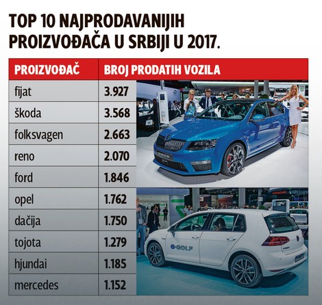 – Umesto nje se na listi našao “fijat tipo”, na osmom mestu. “Fijat tipo” je ujedno imao najveći skok u prodaji na ovoj top 10 listi, jer je njegova prodaja bila skoro 50 odsto bolja nego 2016. godine – objašnjava Sekulić. (BLIC)